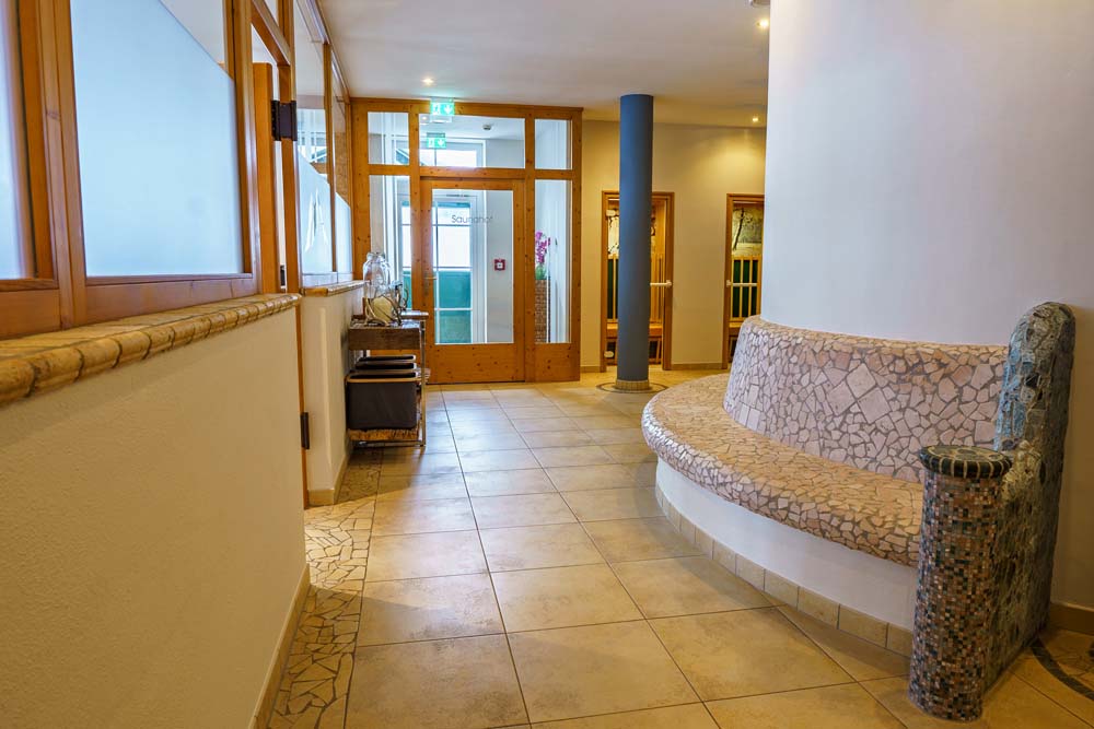 Unser Wellnessbereich: Auf 400 m² stehen Ihnen eine finnische Sauna, Bio-Sauna, Dampfbad, Infrarotkabinen, eine Grotte mit Farblichttherapie, ein Solarium und ein Ruhebereich zur Verfügung. Zudem bieten wir Ihnen ein umfangreiches Massageprogramm direkt in Ihrem Appartement für Entspannung pur.